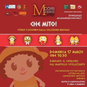 Domenica 17 marzo, dalle ore 10:30, presso il Museo della Città e del Territorio di Cori (LT), si volgerà l’ultimo appuntamento del ciclo di letture animate e laboratori per le famiglie “Che Mito! Storie e leggende dalla collezione museale e dal territorio”. Il progetto è ideato e realizzato dall’associazione culturale Arcadia nell’ambito dei Servizi Educativi del Museo, con la collaborazione della Libreria Anacleto di Cisterna di Latina ed Utopia 2000 Società Cooperativa Sociale Onlus, patrocinato dal Comune di Cori.